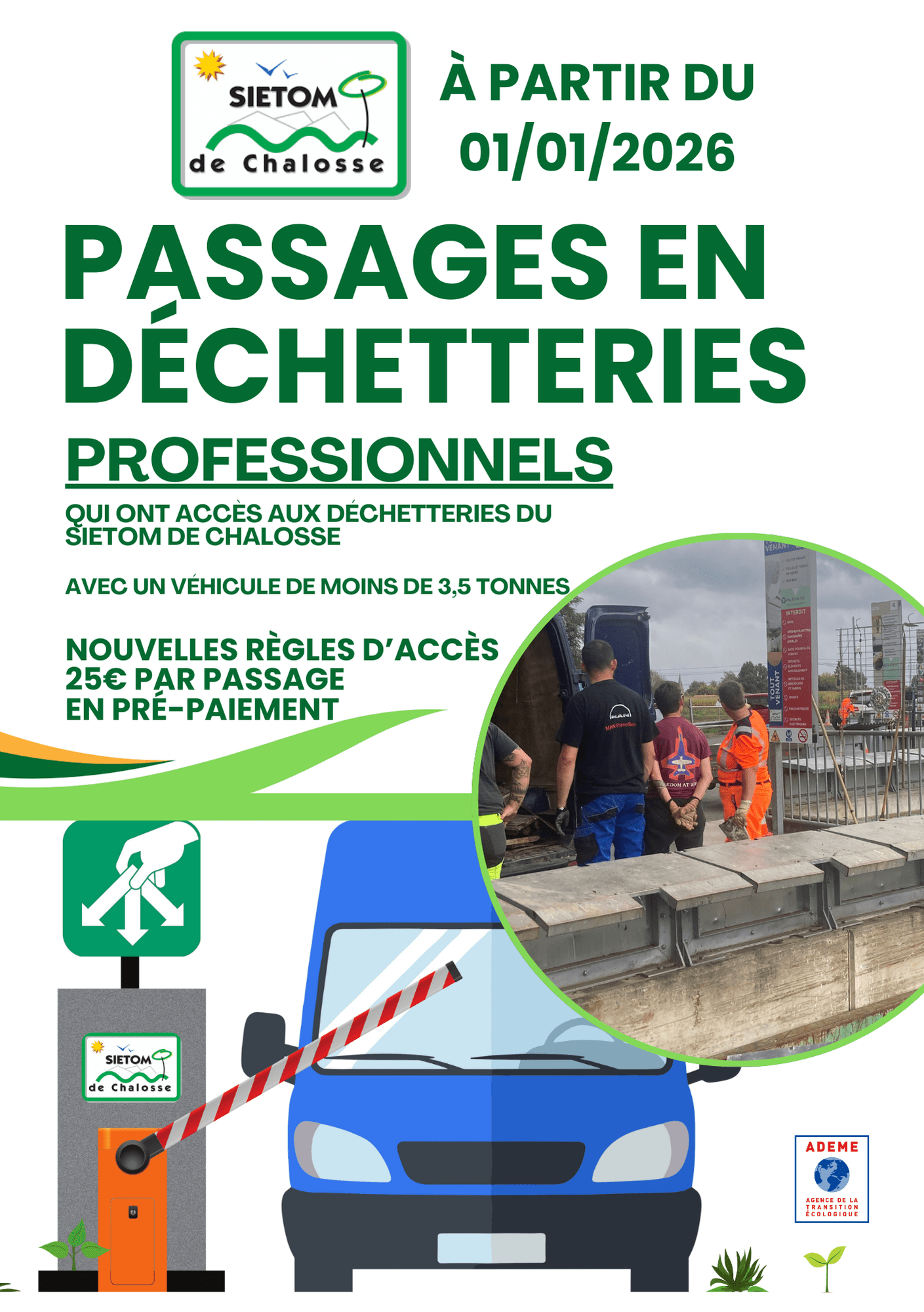 Lors du comité syndical du 8 octobre 2025, les élus du SIETOM ont voté l’instauration d’un tarif par passage pour les professionnels. A partir du 1er janvier 2026, chaque passage devient donc payant pour les professionnels à hauteur de 25€.