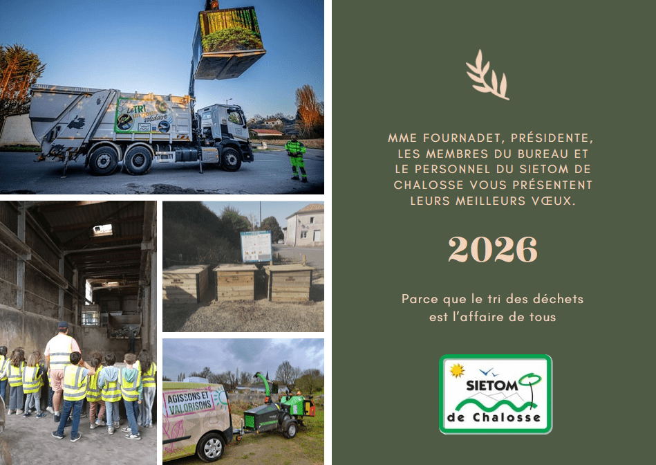 Madame Fournadet, Présidente, les membres du bureau et le personnel du SIETOM vous présentent leurs meilleurs voeux. Parce que le tri est l’affaire de tous