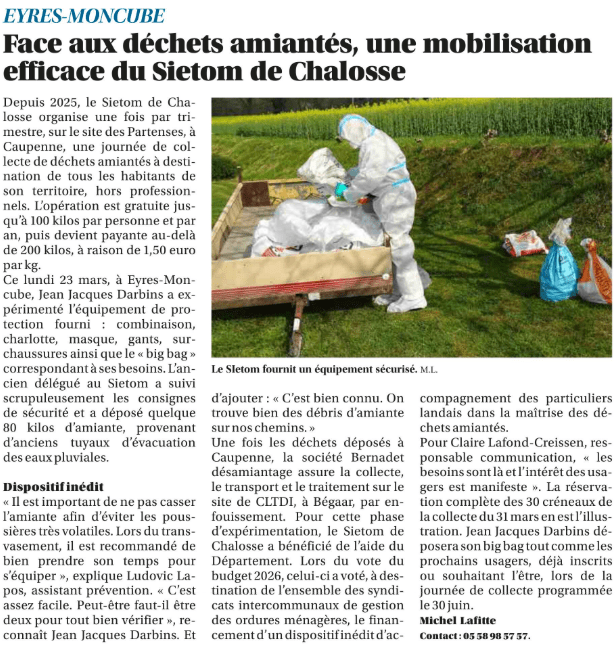 Le journal Sud Ouest s’est fait le relai d’information de nos journées de collecte d’amiante !